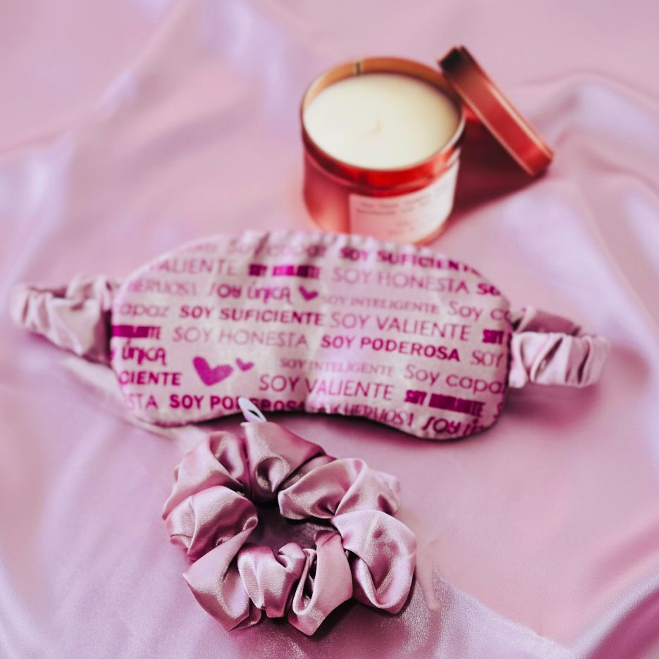 Antifaz para Dormir: Decorado con un patrón de afirmaciones positivas como «Soy Valiente», «Soy Inteligente» y «Soy Poderosa», te ayuda a conciliar un sueño reparador rodeada de mensajes de éxito.