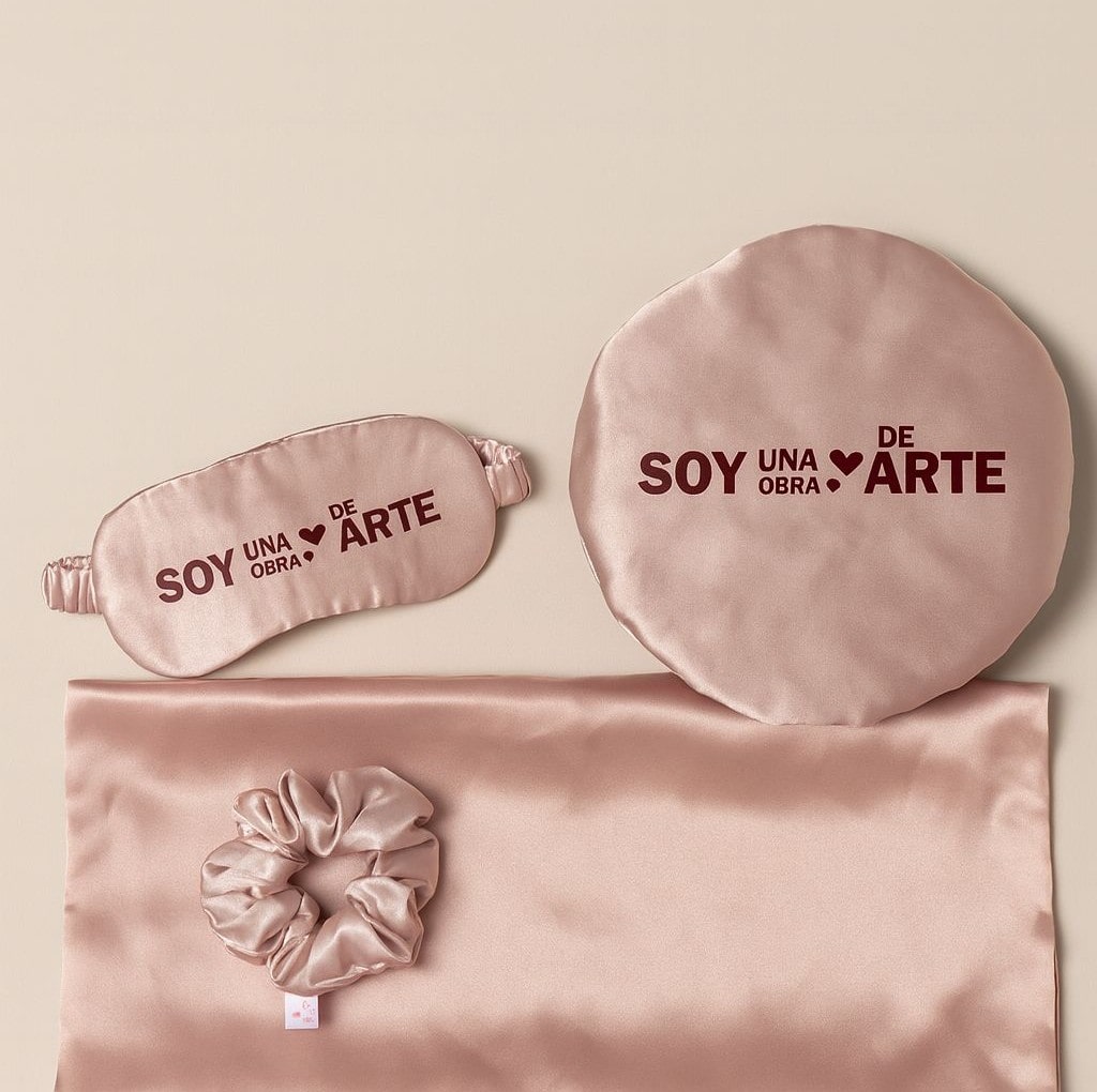 Eleva tus noches y abraza tu valor personal con el Kit Soy una Obra de Arte By Eden. Este set no es solo un accesorio de descanso, es una declaración de amor propio diseñada en un sofisticado color palo de rosa que evoca ternura y elegancia.